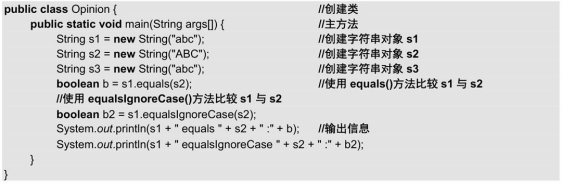 对字符串对象进行比较不能简单地使用比较运算符“==”,因为比较运算符比较的是两个字符串的地址是否相同。即使两个字符串的内容相同,两个对象的内存地址也是不同的,使用比较运算符仍然会返回 false。